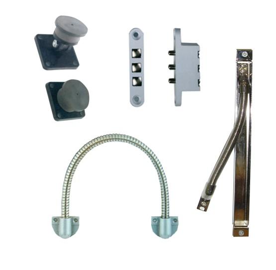 REF: 2973 Kort grijs S-type pantser, voor doorgangsdeuren. Samen met een elektrisch mechanisme vormt het een ingebouwde deuropener. De keuze van het pantser is afhankelijk van het profiel of materiaal van de deur (aluminium, ijzer of hout)