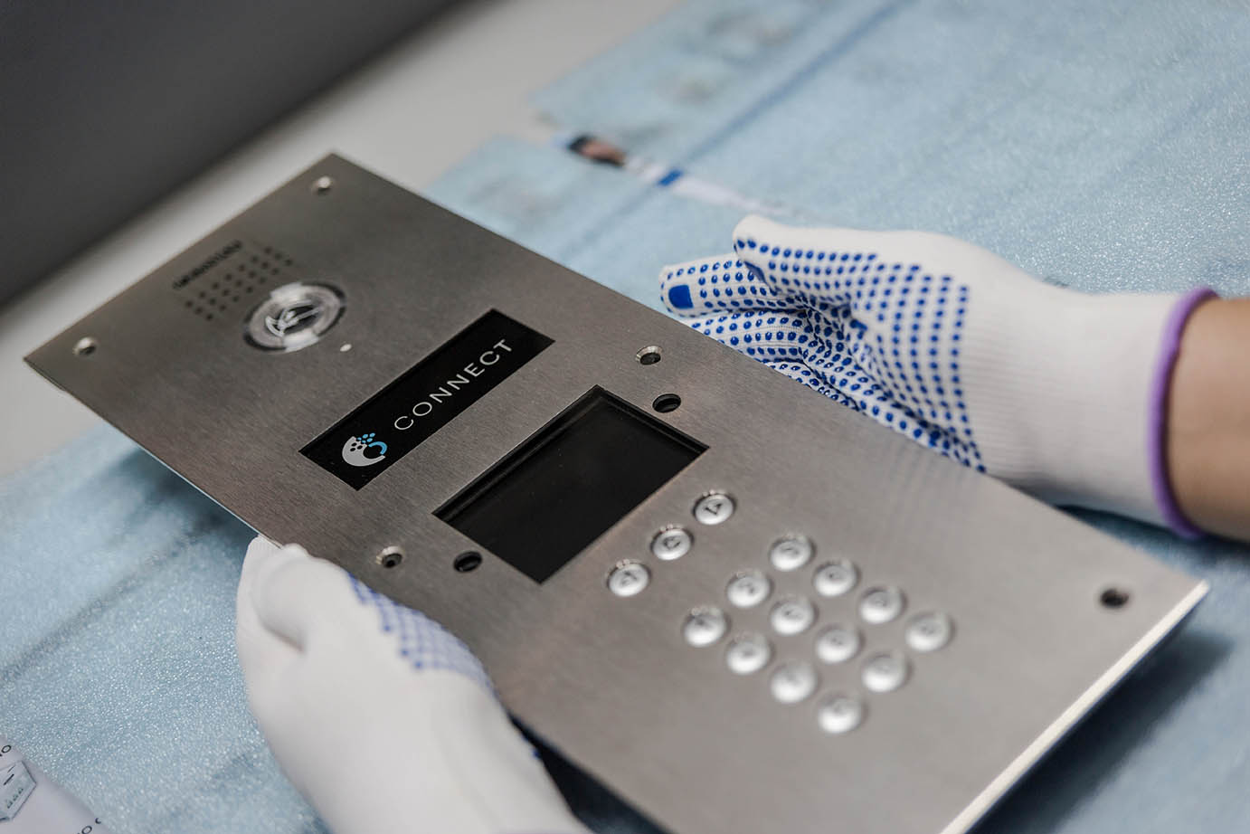 Fabricación de una placa de calle Marine 4G Connect en la fábrica de Fermax en Valencia.